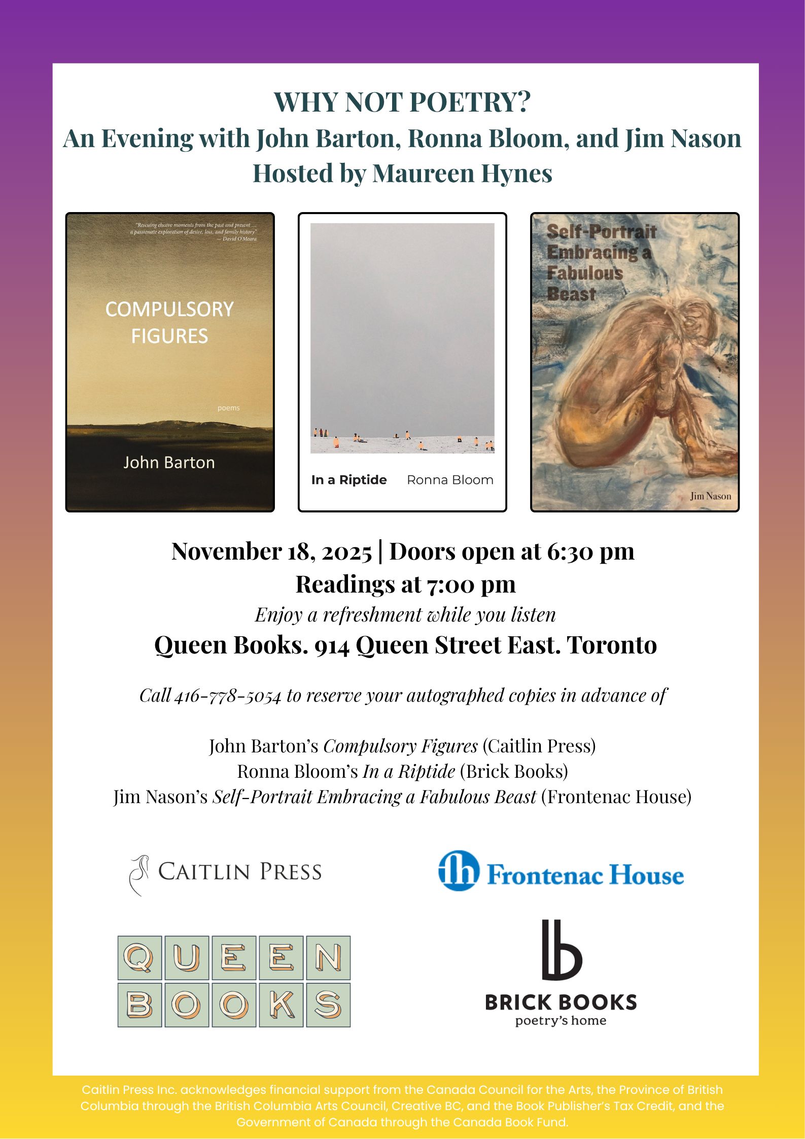 A reading at Queen Books with John Barton and Jim Nason
